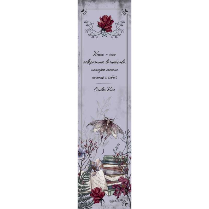 Закладка с резинкой «перехватывает» книжный блок по принципу знаменитых блокнотов молескин. Она практична и гораздо удобнее в использовании, чем обычная бумажная закладка, благодаря резиночке, с помощью которой можно выделить несколько страниц или «перехватить» блок целиком. Такая закладка - отличный сувенир для каждого любителя книг и блокнотов. Дизайн от Марии Суминой, автора книги 'Тайны и магия растений. Путеводитель по миру трав и деревьев', в сети известной как Bruk.Herbs.