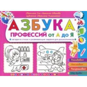 'Азбука профессий от А до Я' - уникальное издание, сочетающее в себе интересное чтение и несколько видов развивающих заданий для дошкольников. Это сборник загадок в стихотворной форме, отгадками к которым являются названия профессий. Знакомство детей с профессиями продолжится, если они выполнят задания: раскрасят фигурку с атрибутами, найдут наклейку с изображением предметов, имеющих отношение к профессии.