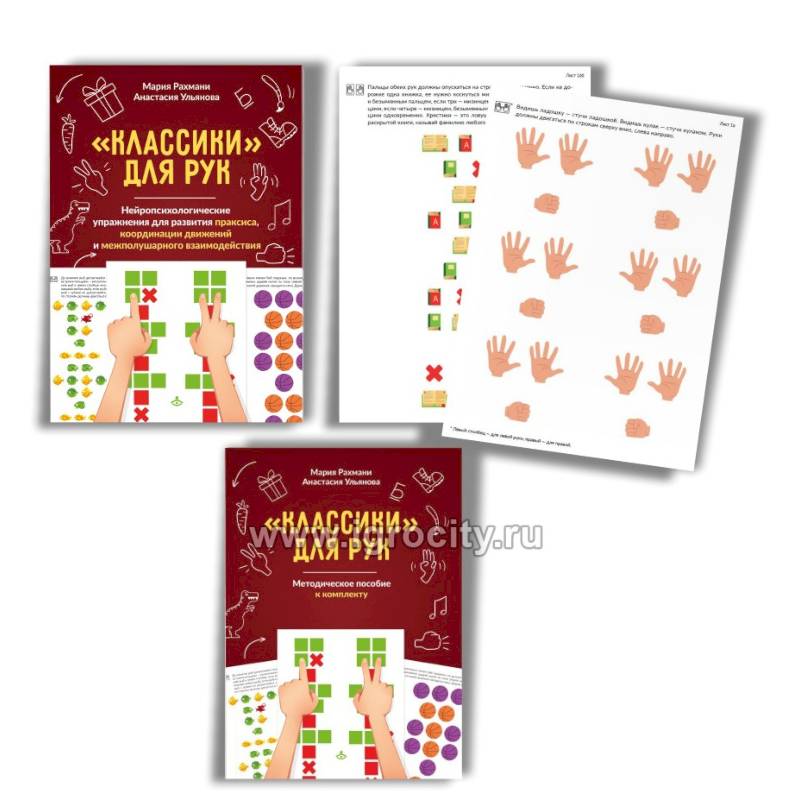 Комплект материалов предназначен для развития мелкой моторики и координации движений, межполушарного взаимодействия и навыков планирования у детей от 6 до 12 лет. Задания комплекта основаны на всем известной игре в классики. На листе выстроены разные изображения, они образуют две вертикальные дорожки. Задача ребенка — касаясь изображений в левом и правом столбцах одновременно обеими руками, пройти обе дорожки от начала до конца.