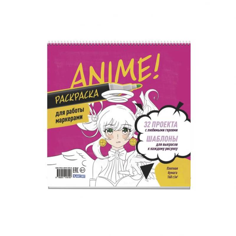Вас ждёт 32 проекта с разными персонажами, которых вы сможете раскрасить спиртовыми маркерами или любыми другими рисовальными принадлежностями. Для удобства работы рядом с каждым рисунком приведён шаблон для выкрасов. Используя его, вы сможете заранее протестировать цвета и их сочетания, чтобы создать свою уникальную палитру для каждого проекта! Сюжеты раскраски различаются по детализации, стилям и жанрам. Преимущество нашего издания ещё и в том, что страницы выполнены из очень плотной бумаги (160 г/м2), листы удобно скреплены на пружине и сопровождаются твёрдой подложкой.