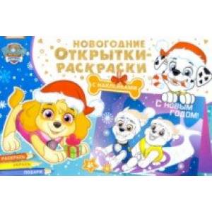 Новогодние открытки-раскраски с наклейками