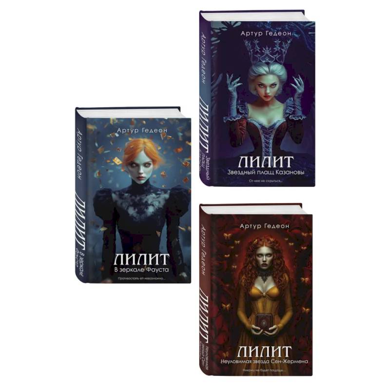 В комплект входят мистические триллеры Артура Гедеона 'Лилит. В зеркале Фауста', 'Лилит. Звездный плащ Казановы', 'Лилит. Неуловимая звезда Сен-Жермена'.